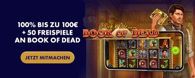 Wird bei der Einzahlung automatisch gutgeschrieben. Stornierung kann angefordert werden. Nur die erste Einzahlung. Max. Bonus 100€. Die maximale Anzahl an Freispielen ist 50. Spiel: Book of Dead, Spielwert: 0.10€. Einsatzanforderung: Innerhalb von 30 Tagen 30 Mal den Einzahlungs- und Bonusbetrag und 60 Mal den Freispiel-Gewinnbetrag setzen (nur Spielautomaten zählen). Der maximale Einsatz sind 10 % (min. 0.10€) des Freispiel-Gewinnbetrags und Bonusbetrags oder 5€ (geringster Betrag gilt). Die Spiele müssen verwendet bzw. der Bonus in Anspruch genommen werden, bevor das eingezahlte Guthaben genutzt wird. Es gelten die Bonusrichtlinien.